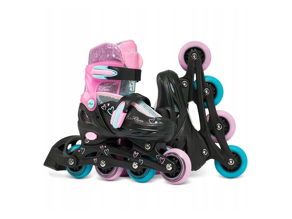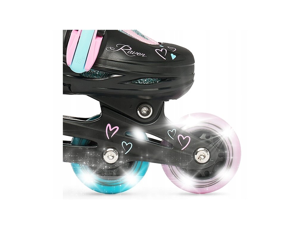 Brusle 2v1 Raven Loret Glitter Black/Mint/Pink svítící všechna kola LED