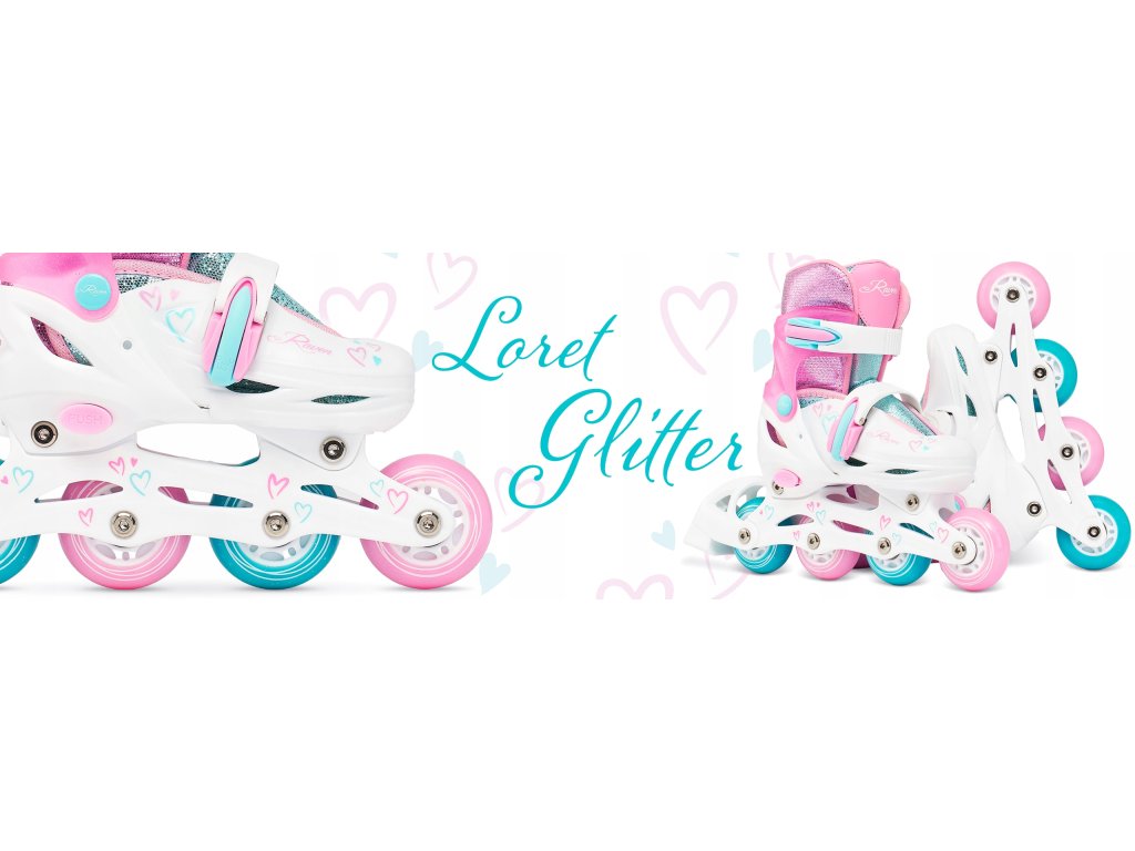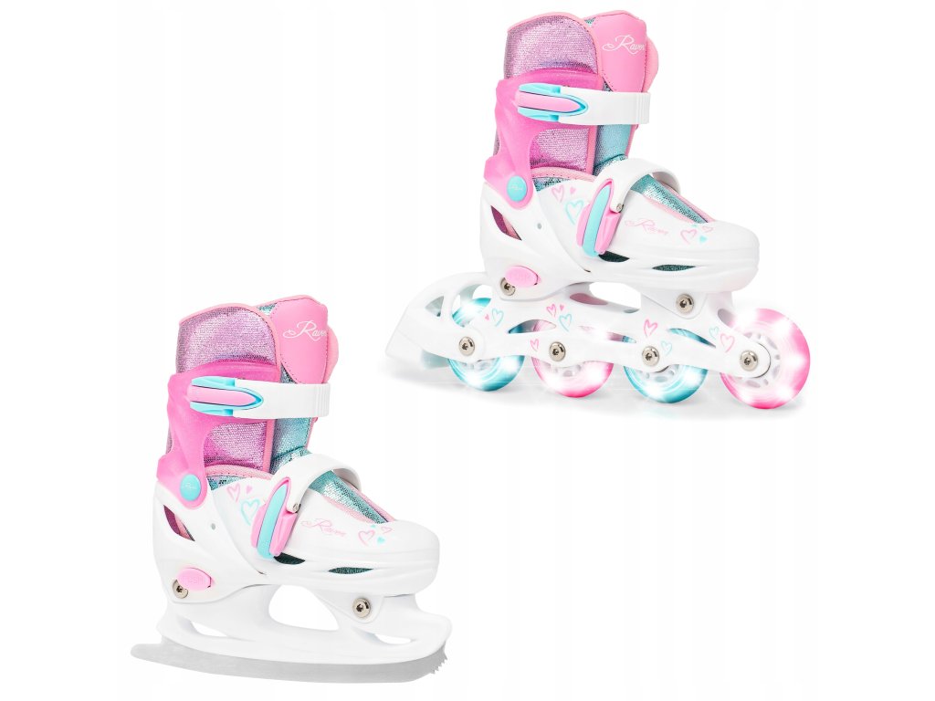 Brusle 2v1 Raven Loret Glitter White/Mint/Pink svítící všechna kola LED