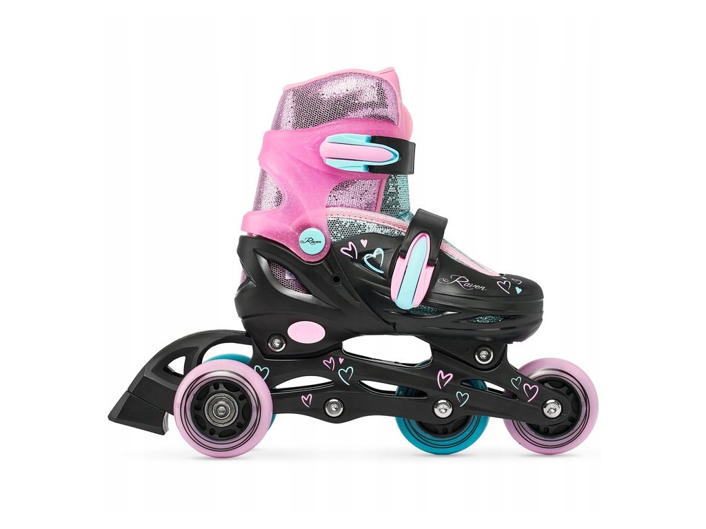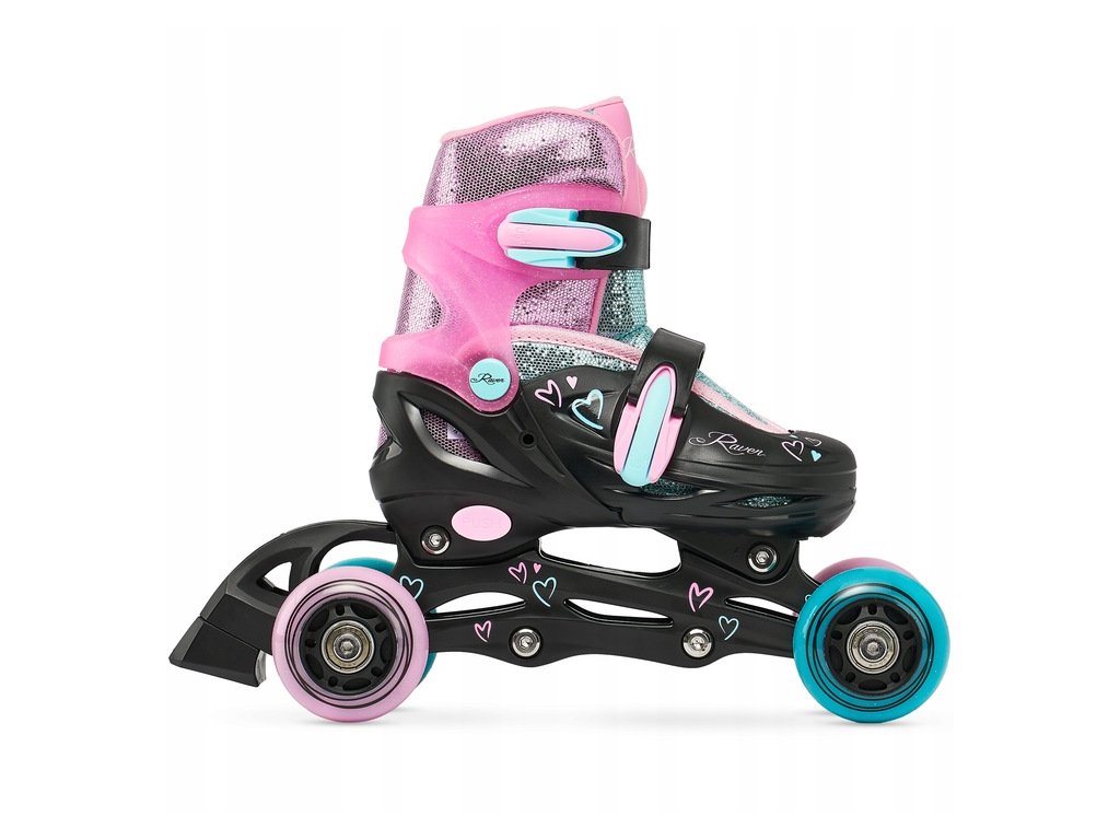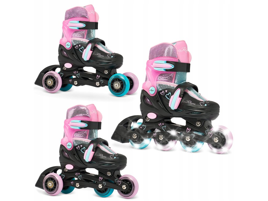Brusle 3v1 Raven Loret Glitter Black/Mint/Pink svítící kola LED
