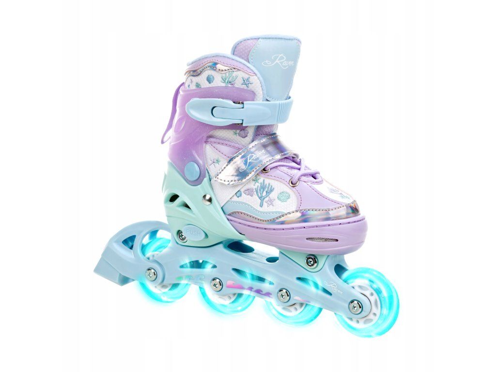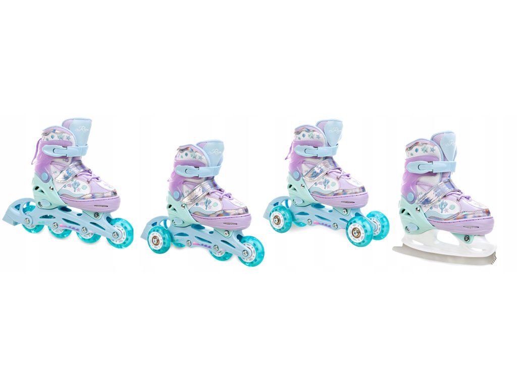 Nastavitelné dětské brusle RAVEN Isla 4v1 jsou univerzálním řešením pro celoroční použití. Nabízejí až 4 možnosti konfigurace – kolečkové brusle, in-line brusle, čtyřkolečkové brusle (quad) a lední brusle. Jsou ideální pro začátečníky i mírně pokročilé bruslaře.