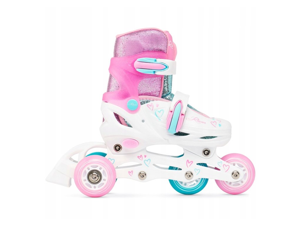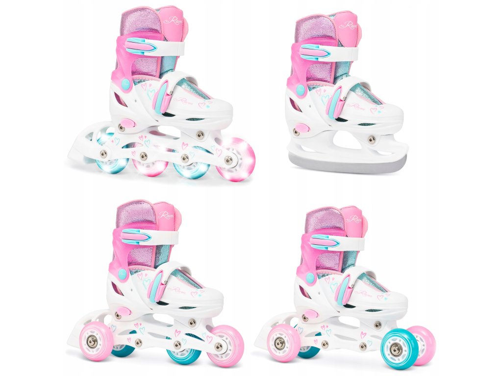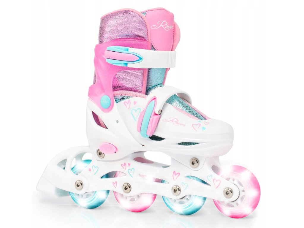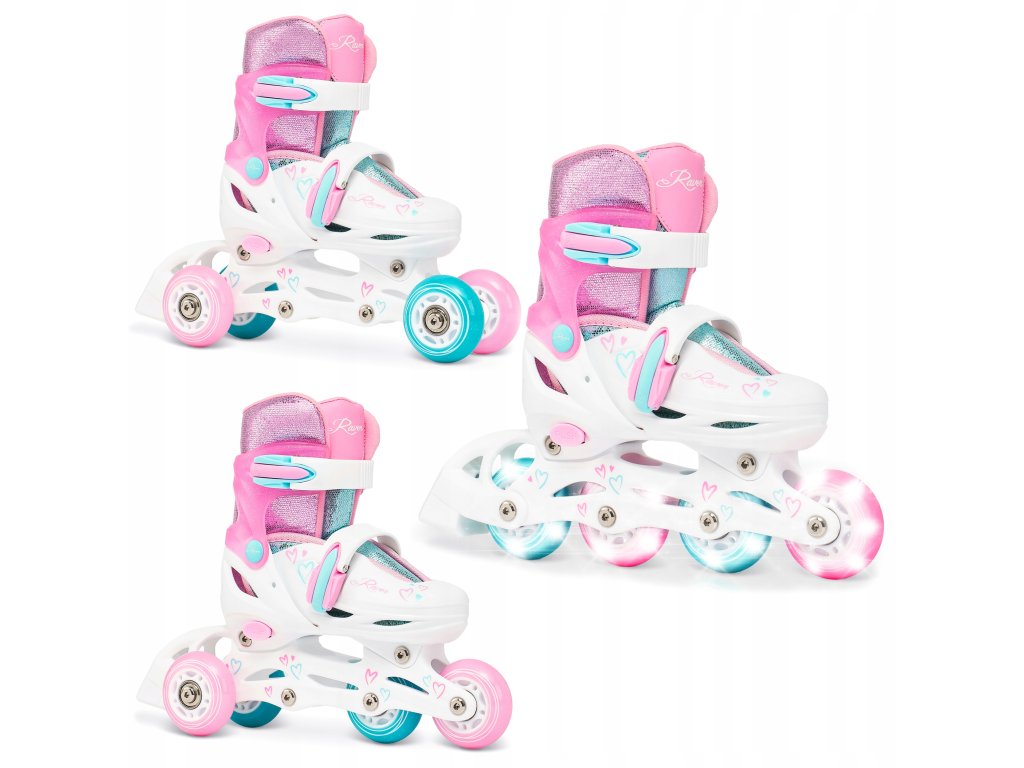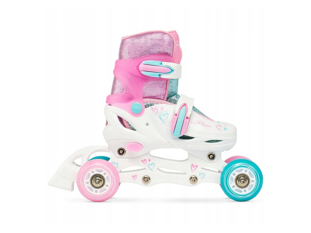 Brusle 4v1 Raven Loret Glitter White/Mint/Pink svítící kola LED