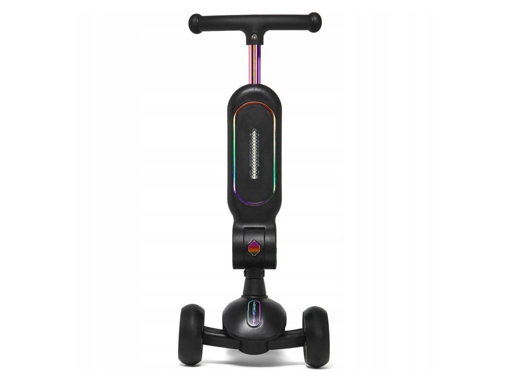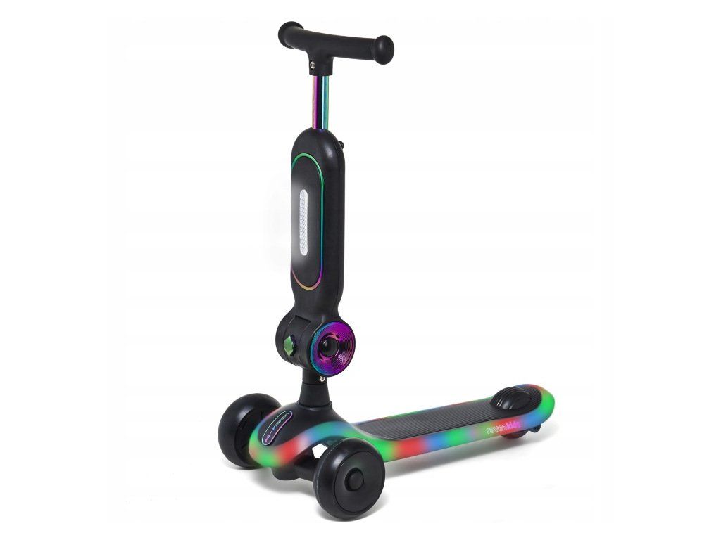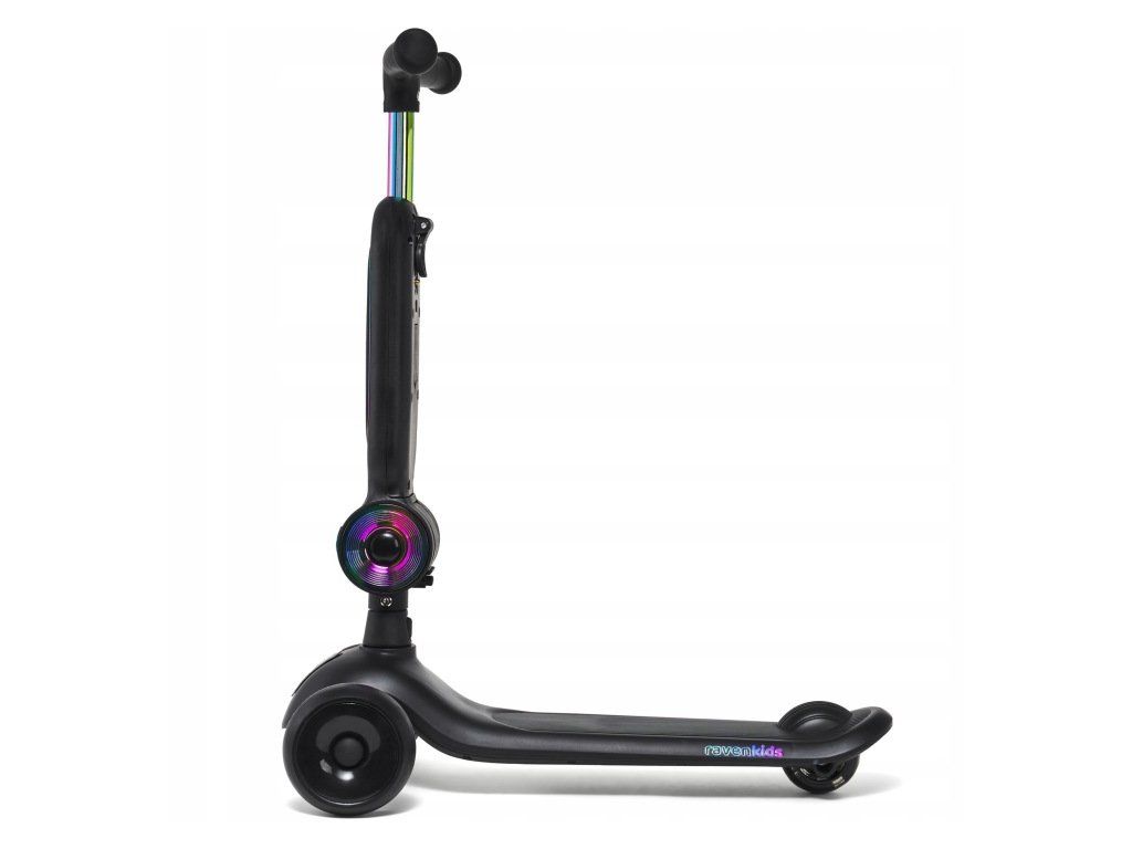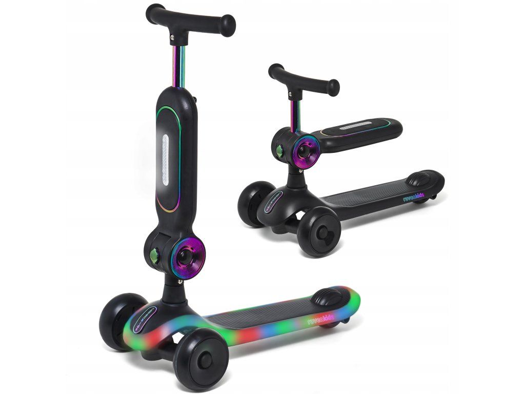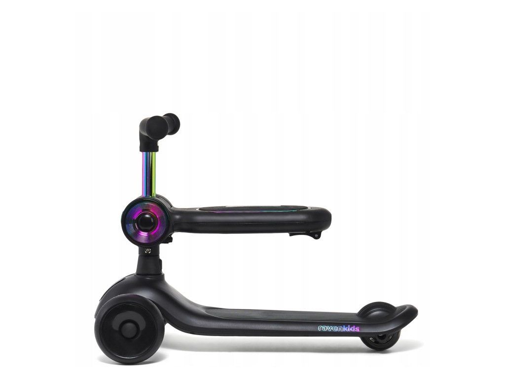 Dětská tříkolová koloběžka 2v1 RAVEN Lumiloo Black / Neo Chrome s LED podsvícením a sedátkem