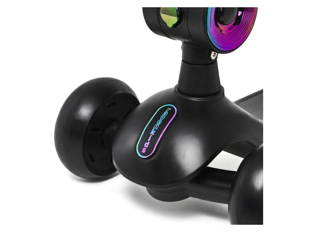 Podsvícená nášlapná deska a sedátko zvyšují viditelnost dítěte. Přední světlo zajišťuje lepší orientaci při jízdě. Napájení je řešeno pomocí 6× AAA baterií (nejsou součástí balení).