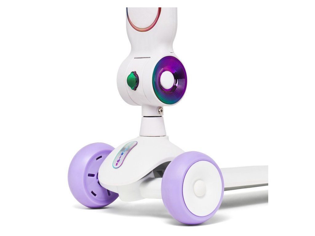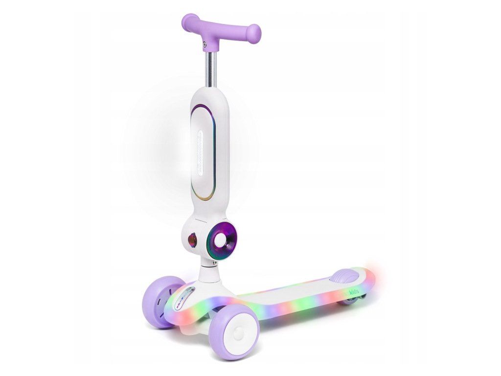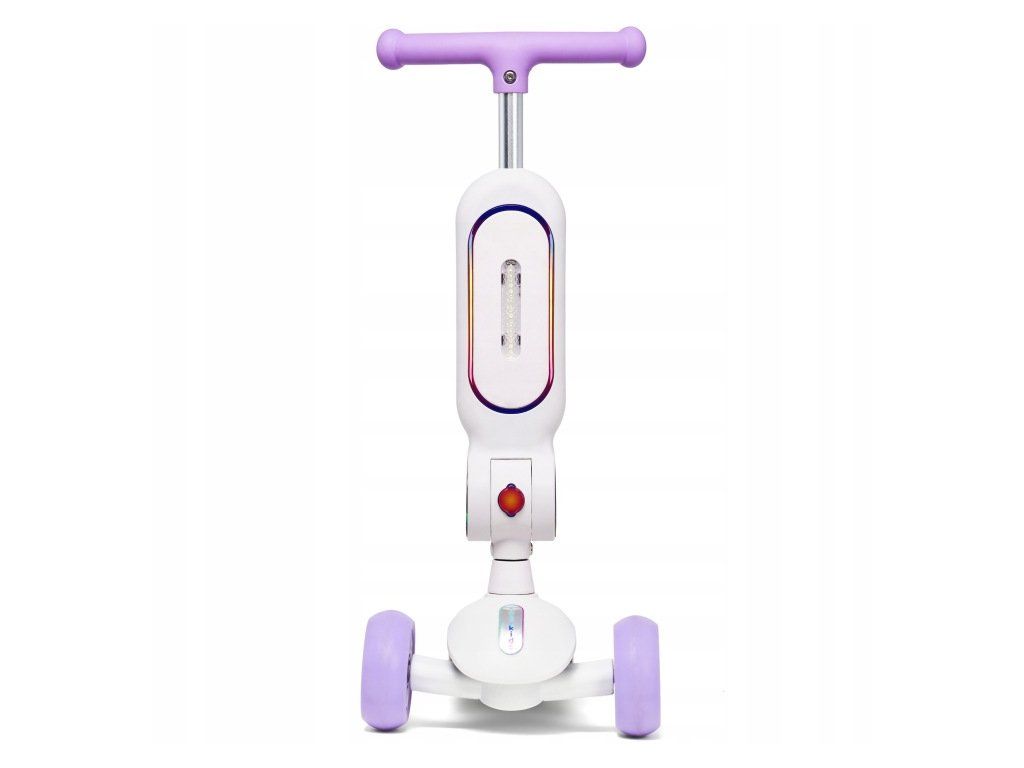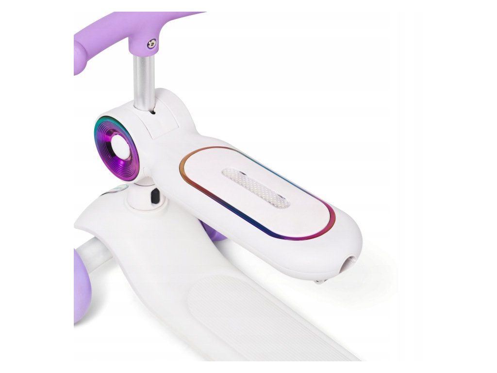 Podsvícená nášlapná deska a sedátko zvyšují viditelnost dítěte. Přední světlo zajišťuje lepší orientaci při jízdě. Napájení je řešeno pomocí 6× AAA baterií (nejsou součástí balení).