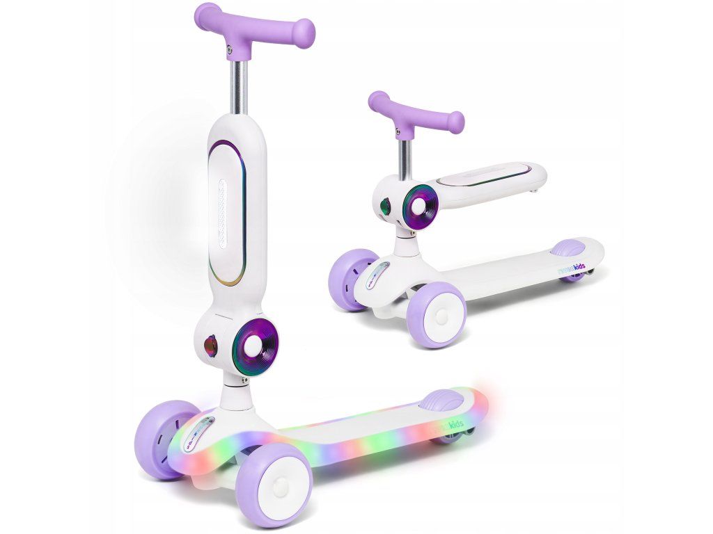 RAVEN Lumiloo je praktická koloběžka a odrážedlo v jednom, ideální pro děti, které se učí rovnováze a jízdě. Díky stabilní tříkolové konstrukci, kvalitním materiálům a efektnímu LED podsvícení nabízí bezpečnou i zábavnou jízdu.