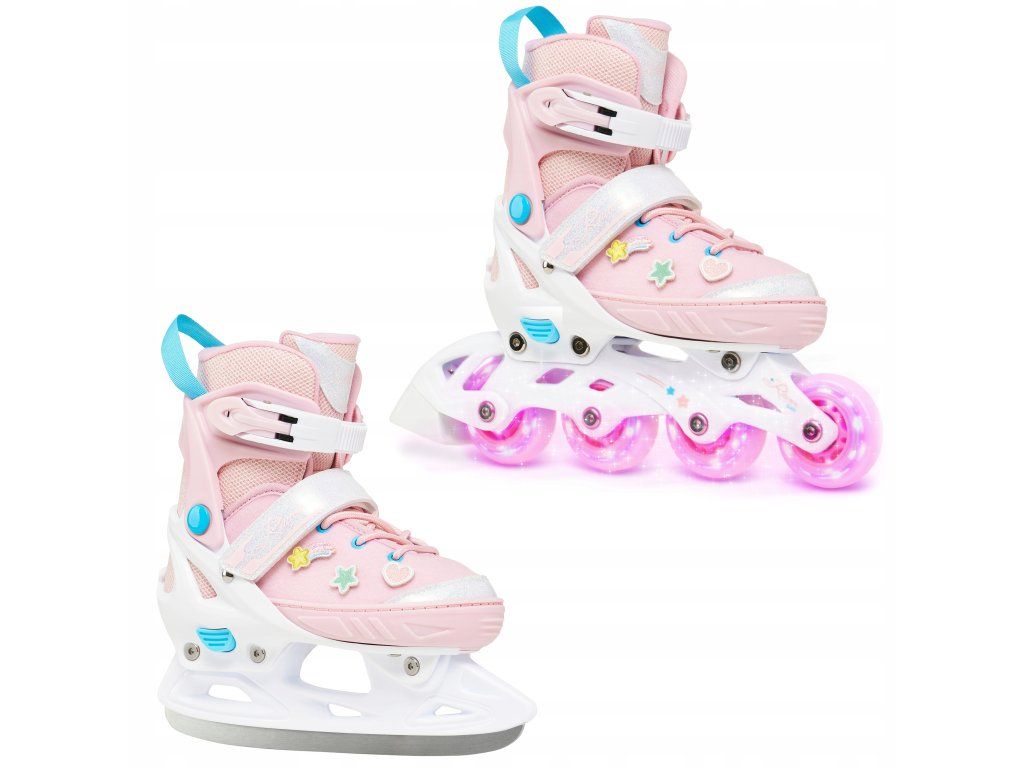 Dětské kolečkové brusle a lední brusle 2v1 Raven Lilly – svítící LED kolečka a vyměnitelné ozdoby na suchý zip