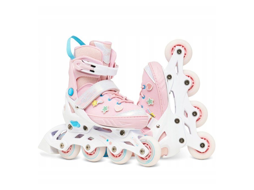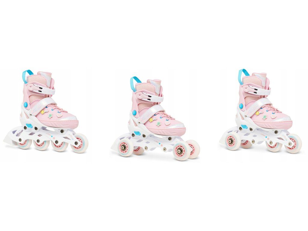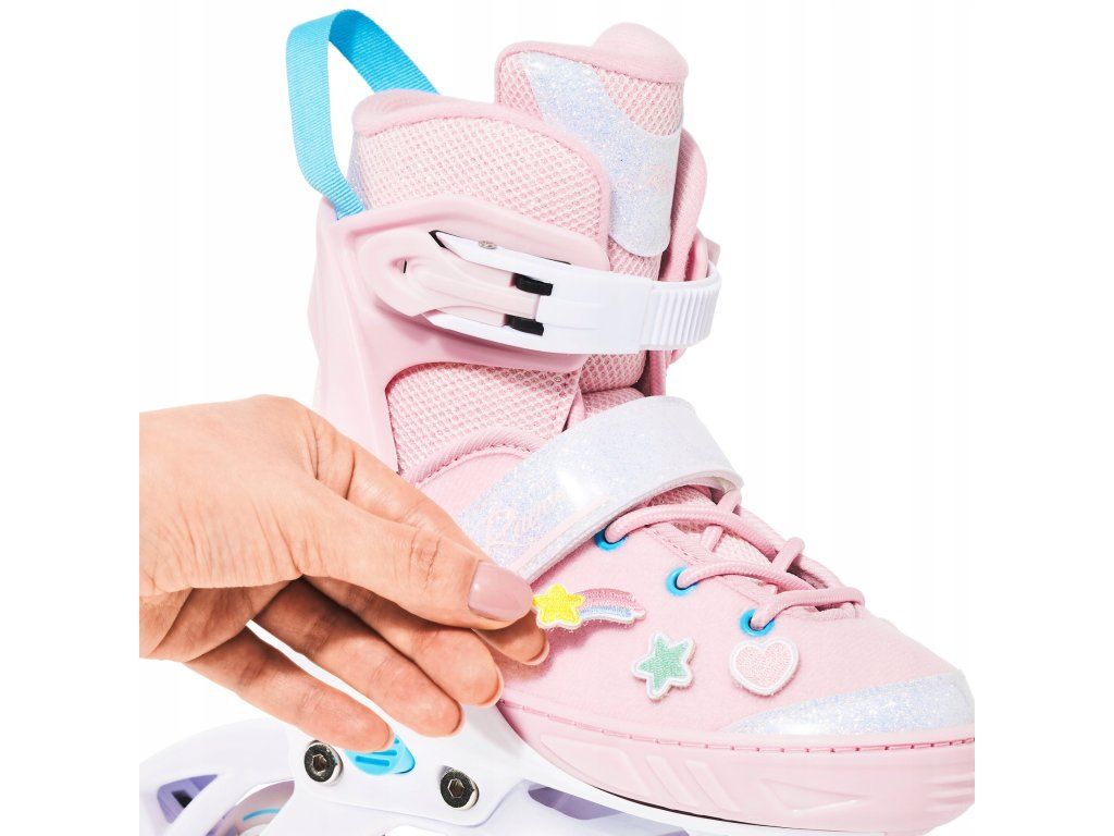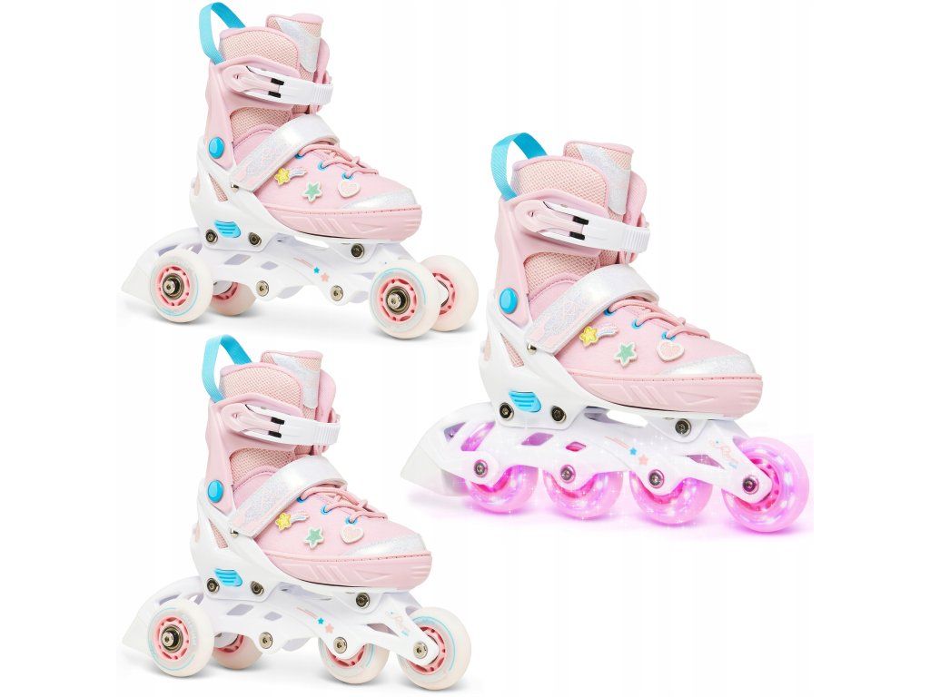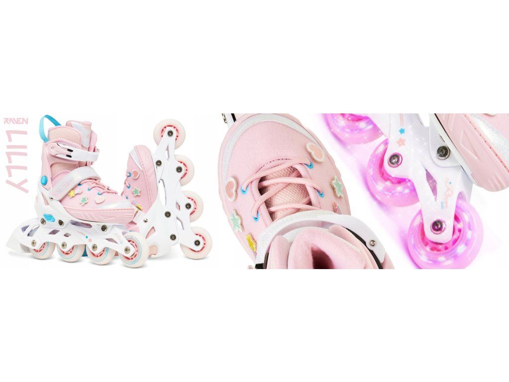 Dětské kolečkové inline brusle 3v1 Raven Lilly – svítící LED kolečka a vyměnitelné ozdoby na suchý zip