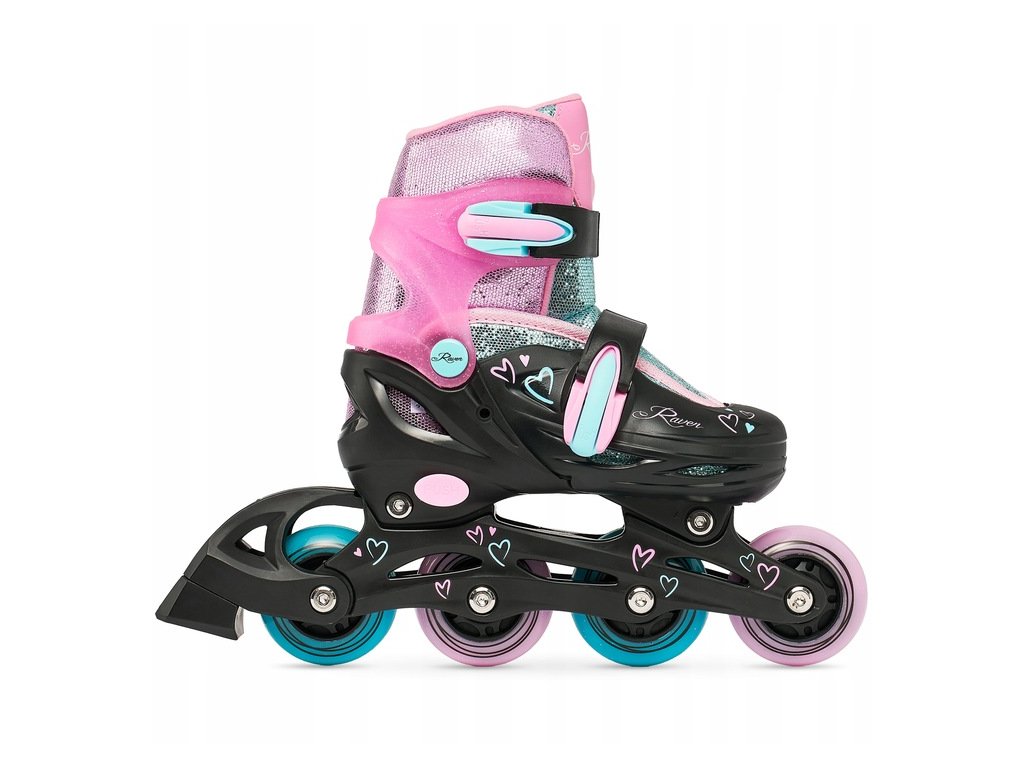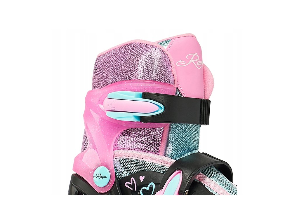 Dětské kolečkové inline brusle Raven Loret Glitter Black/Mint/Pink svítící kola LED