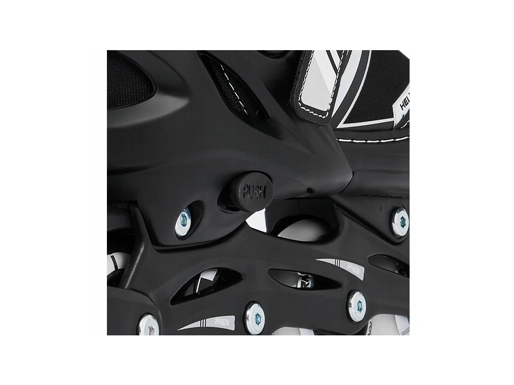 Velikost brusle se nastavuje stisknutím tlačítka nastavovacího mechanismu a vysunutím přední části boty