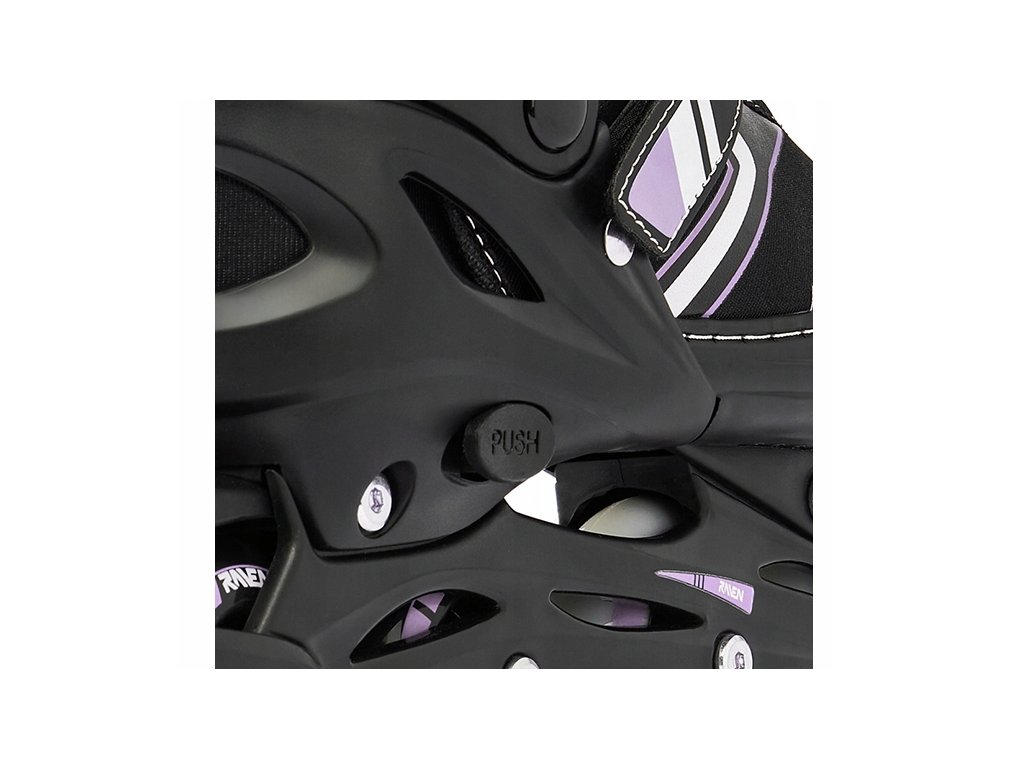 Velikost brusle se nastavuje stisknutím tlačítka nastavovacího mechanismu a vysunutím přední části boty