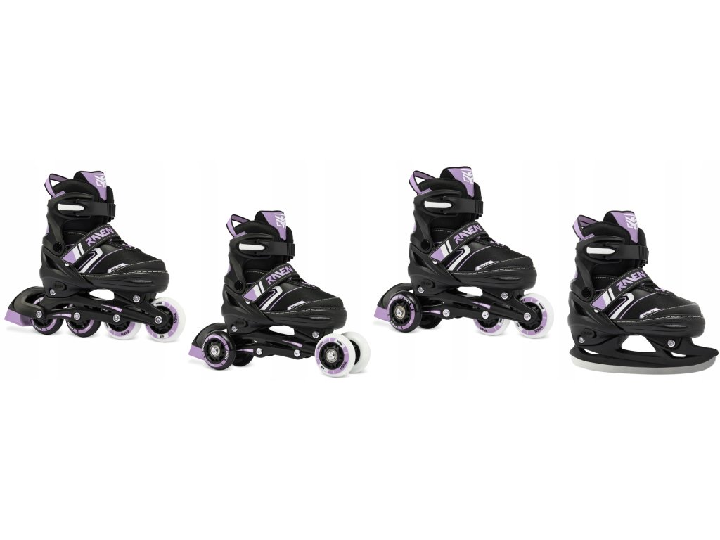 Kolečkové brusle 4v1 Raven Helixi Black/Violet svítící kolo LED