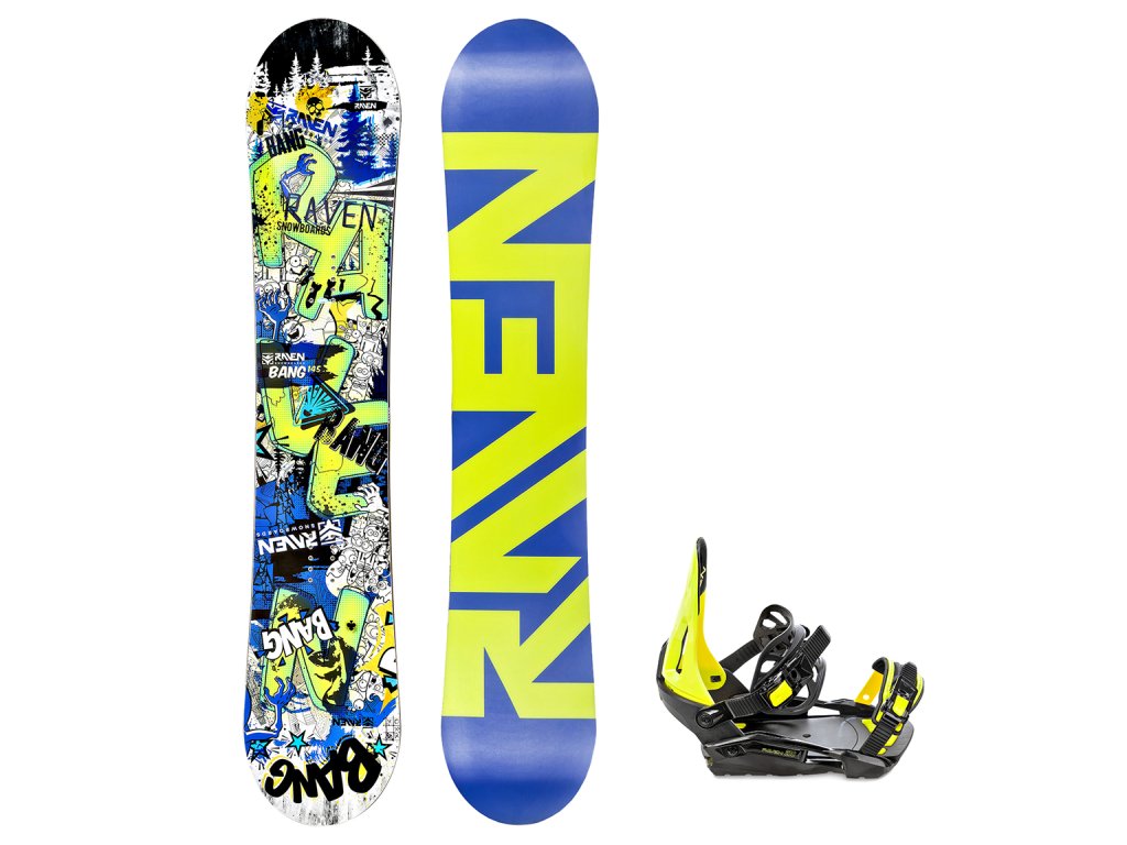 Snowboard komplet Raven Bang junior + vázání S230 black/lime