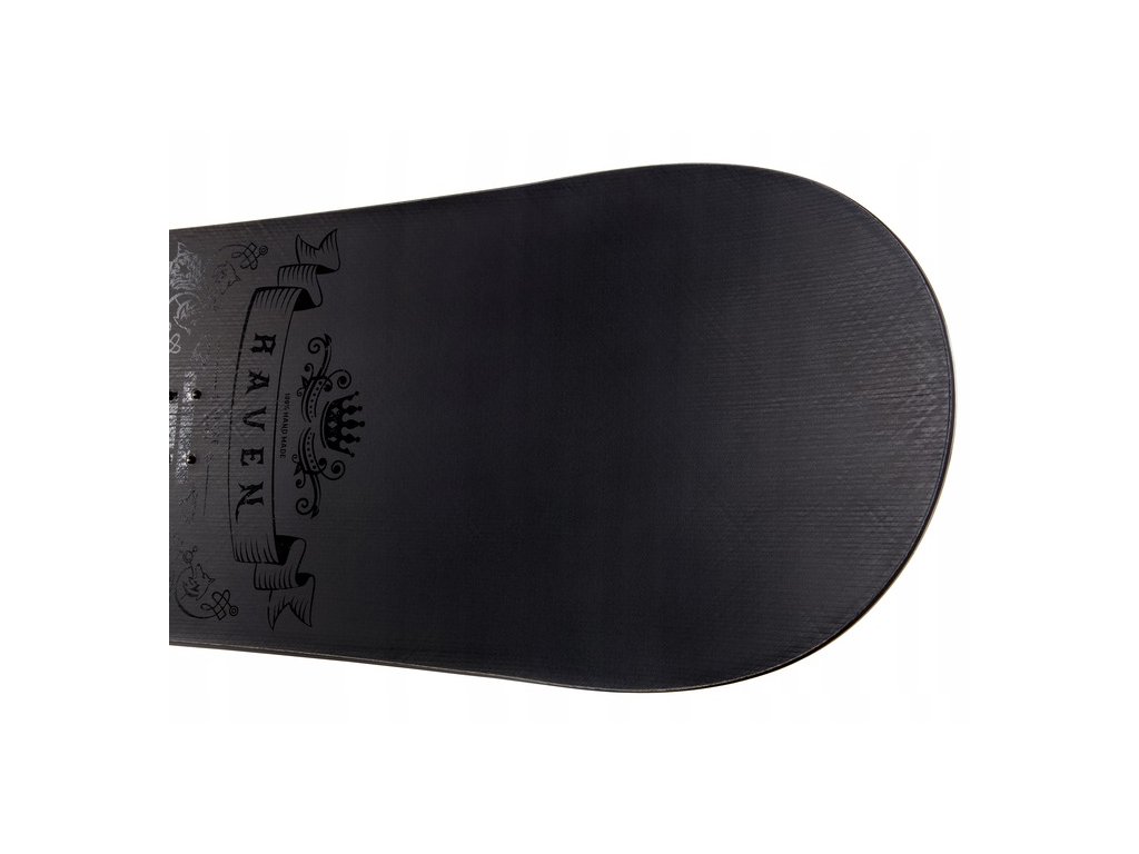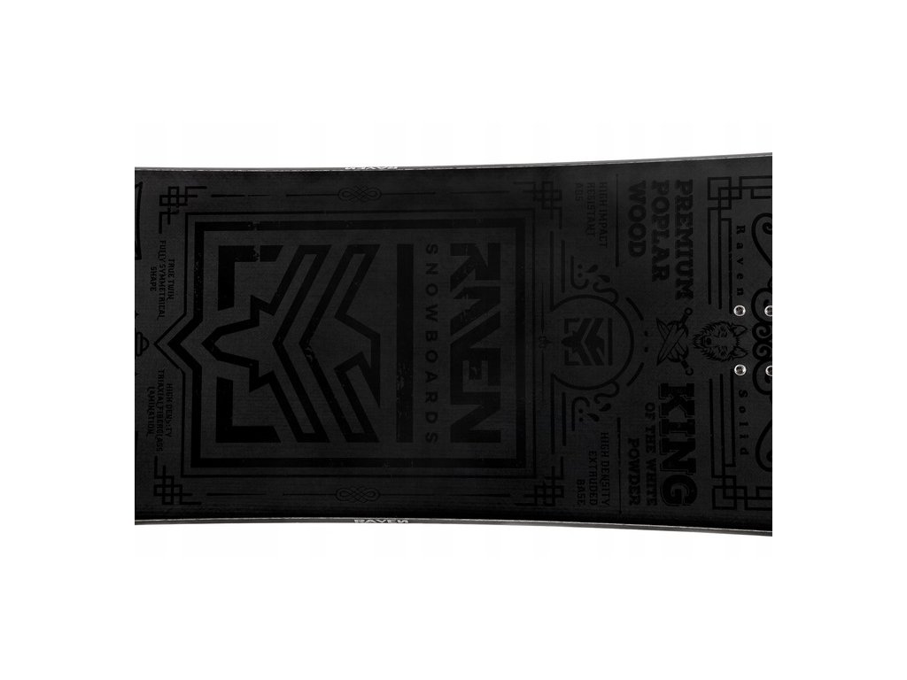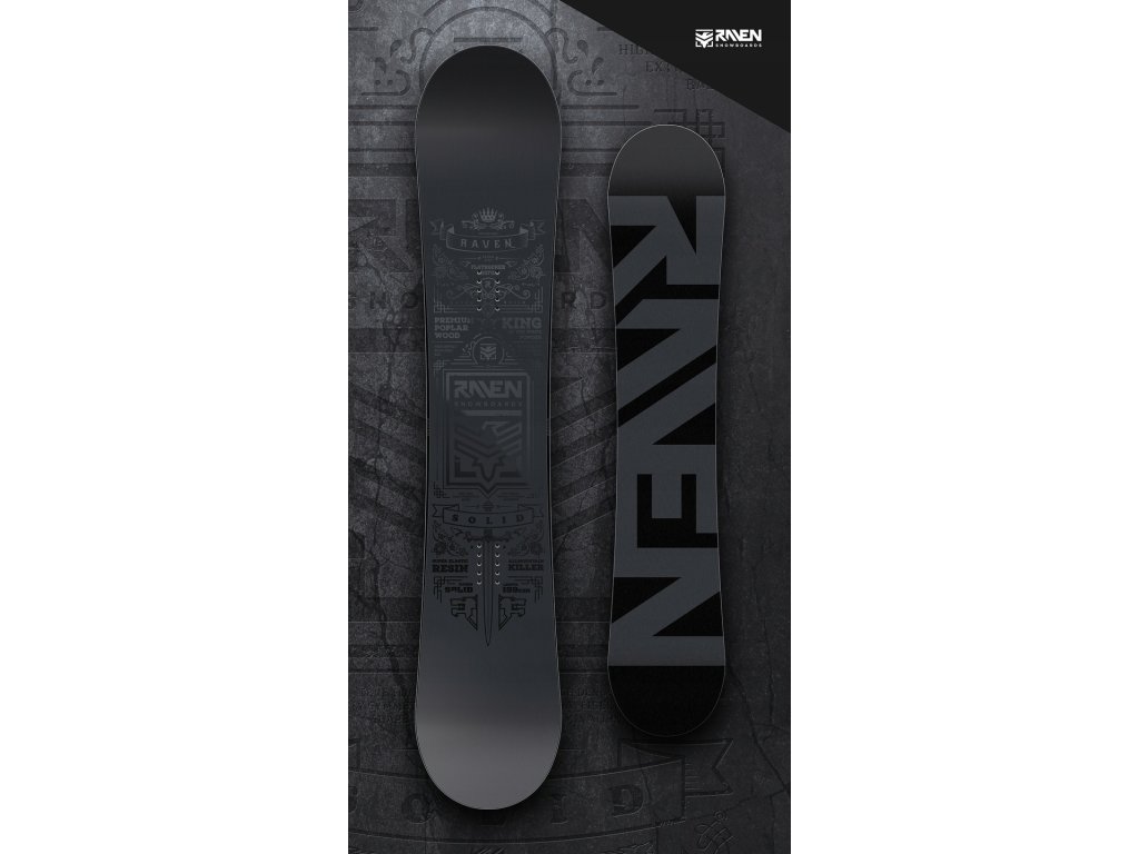 Snowboard Raven Solid se freestylový twintip snowboard s prohnutím flatrock. Flex a radius snowboardu je zcela souměrný. Inzerty jsou umístěny mírně dozadu tak, že lze vázání umístit jak směrovně, tak souměrně. Snowboard má topolové celo-dřevěné jádro tip-to-tail, ABS sidewall konstrukci a biaxiální skelnou laminaci. Povrch snowboardu je lakovaný, což mu dodává elegantní vzhled.