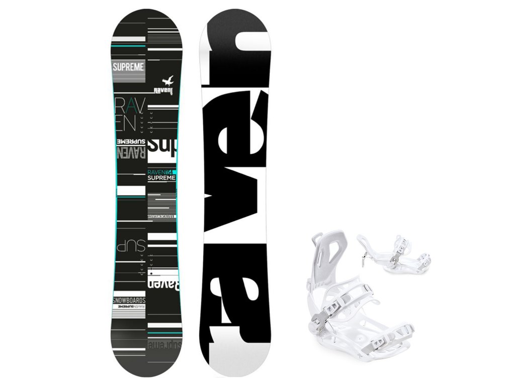 Snowboard komplet Raven Supreme black/mint + vázání Fastec FT360 white