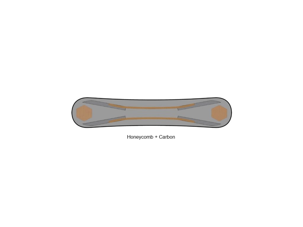 Konstrukce Jádra: Honeycomb + Carbon prvky - Ultra nízká váha a maximální pop (pružnost) pro skoky. Karbon zajišťuje okamžitou reakci a dlouhou životnost.