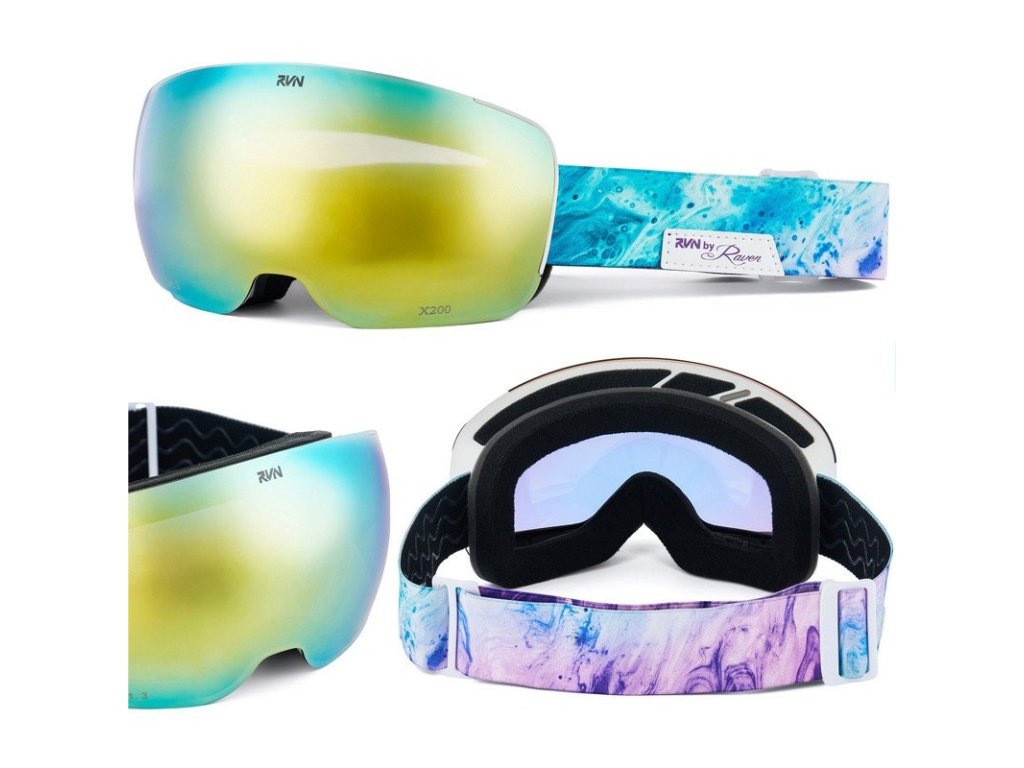 Brýle Raven X200 Black nabízejí výrazný a atraktivní vizuální dojem díky bezrámové technologii. Model X200 má sférické čočky se zlatou zrcadlovou vrstvou. Čočky jsou upevněny pomocí silných magnetů, což umožňuje rychlou a snadnou výměnu čoček na svahu. Brýle těsně přiléhají k obličeji, jsou kompatibilní s helmou RAVEN a co je důležité, součástí balení je i pevné pouzdro pro jejich uložení.